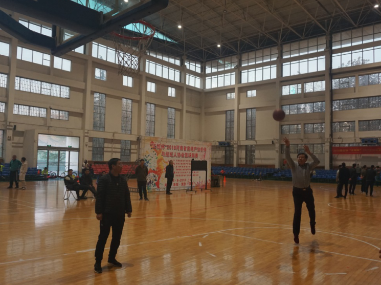 公司總經(jīng)理孫留鎖正在進行二分球投籃