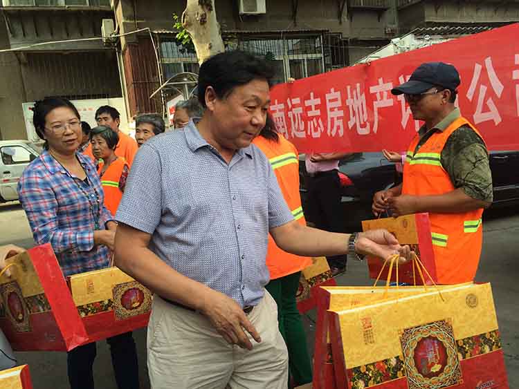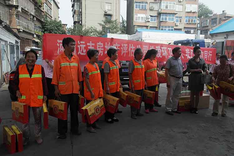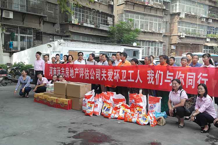 為做好環(huán)衛(wèi)工人的關(guān)愛工作,河南遠(yuǎn)志房地產(chǎn)評(píng)估有限公司特別舉辦了這次針對(duì)西工區(qū)環(huán)衛(wèi)工人的慰問(wèn)活動(dòng),將月餅、洗衣粉及毛巾等節(jié)日慰問(wèn)品送到了西工區(qū)環(huán)衛(wèi)工人家園一線環(huán)衛(wèi)工人代表手里。活動(dòng)開始,環(huán)衛(wèi)局書記代表環(huán)衛(wèi)工人們向遠(yuǎn)志房地產(chǎn)評(píng)估有限公司領(lǐng)導(dǎo)的關(guān)愛表示感謝,并表示將以更飽滿的精神做好本職工作,以感謝大家的關(guān)心與愛護(hù),為廣大群眾創(chuàng)造一個(gè)更美好的洛陽(yáng)城。隨之遠(yuǎn)志房地產(chǎn)評(píng)估有限公司孫總發(fā)表講話稱:環(huán)衛(wèi)工人是城市的美容師,他們披星戴月、夜以繼日,用他們辛勤的汗水為洛陽(yáng)城創(chuàng)造了干凈和整潔的環(huán)境,對(duì)勞動(dòng)者表達(dá)了充分的敬意!至此慰問(wèn)活動(dòng)***結(jié)束。